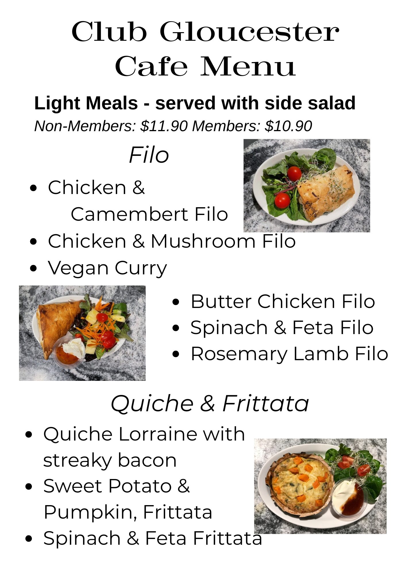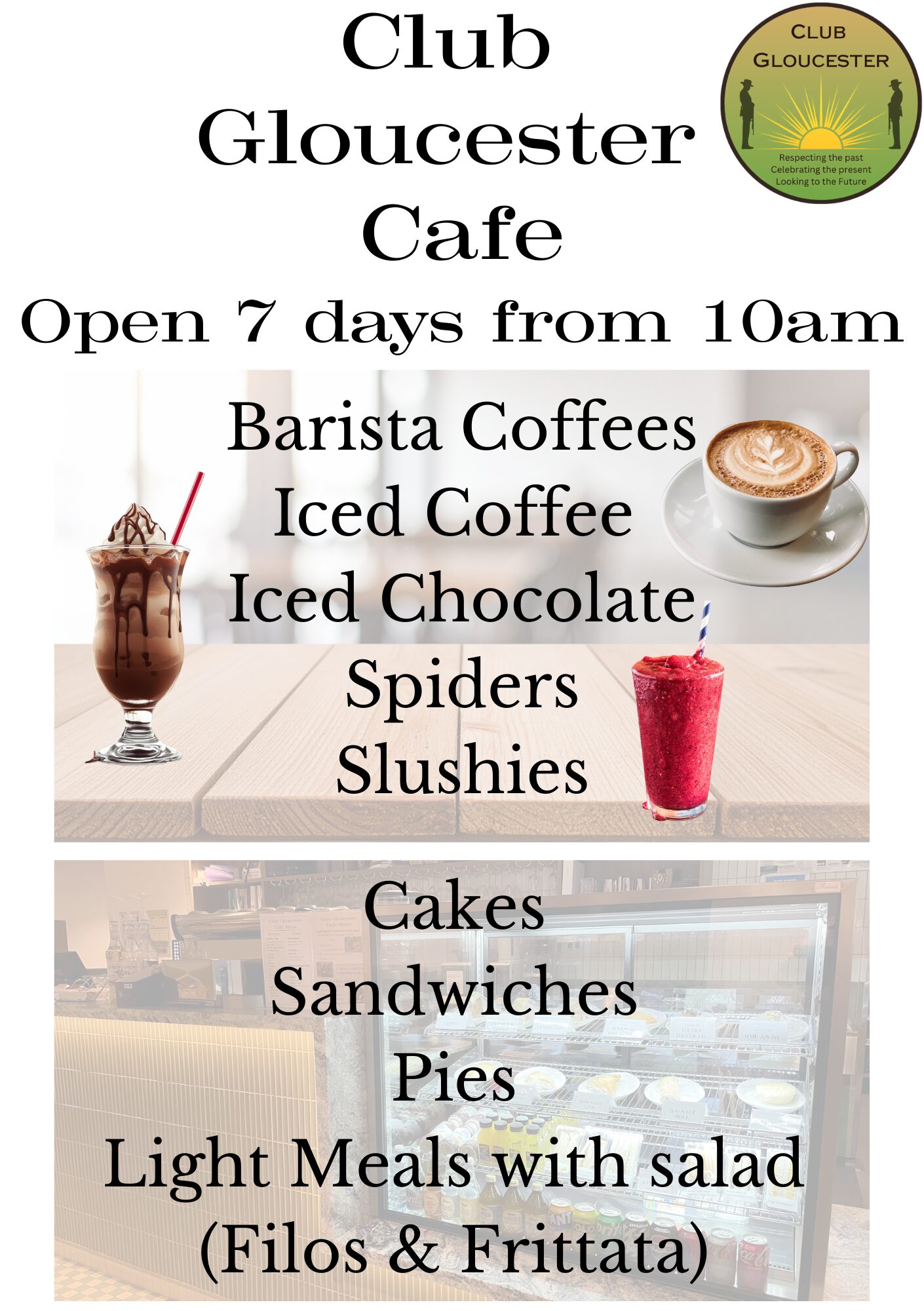 We have specials each week, so come in, meet your friends at Club Gloucester and stop for a coffee or hot drink and something to eat.